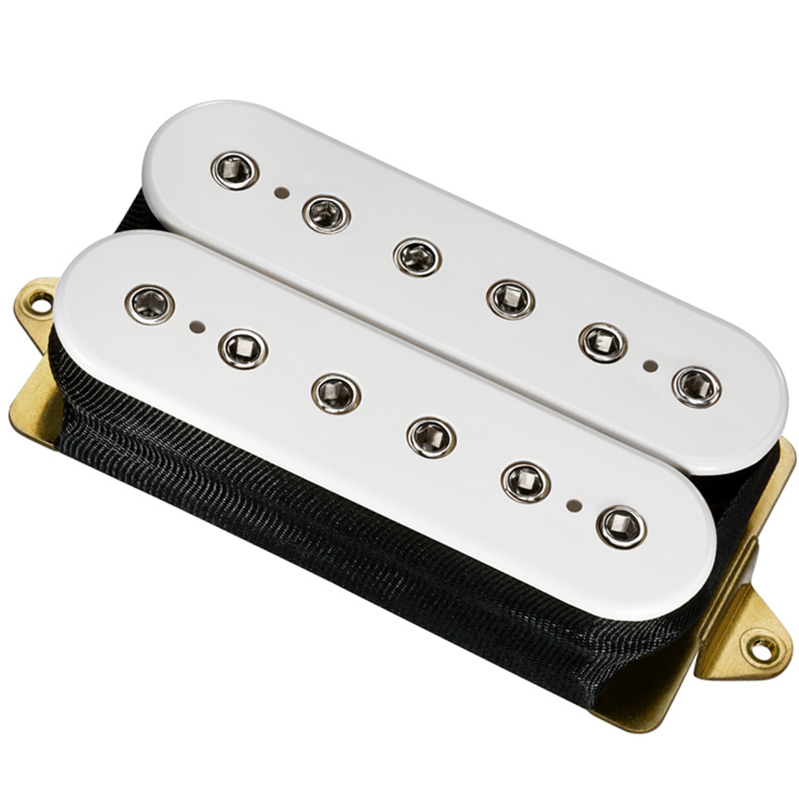 Der DP220 F D Activator von DiMarzio ist die perfekte Mischung aus einem aktiven und passiven High-Output-Steg-Humbucker. Wenn man auf den obertonreichen Klang von aktiven Humbuckern steht, aber auch genügend Dynamik für sein Spiel benötigt, dann hat man hier genau den richtigen Steg-Humbucker gefunden. Der hohe Ausgangspegel bläst Röhrenverstärker ordentlich an und verleiht so einen druckvollen, aber auch transparenten High-Gain-Sound – Eigenschaften, an denen sich vor allem Gitarristen erfreuen, die modernen Hard Rock oder Metal auf Gitarren mit Floyd Rose spielen. Die definierte Ansprache ist außerdem bestens für tieferer Tunings geeignet. Das hier vorliegende Model DP220 FWH ist in Weiß gehalten und besitzt ein F-Spacing. Wer möchte, der kann den Humbucker auch im normalen Spacing (DP 220) für Gitarren mit festen Brücken erwerben - oder auch in anderen Farbvarianten.