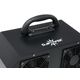 • am Gehäuse angebrachter Griff und eingebauten Räder für leichten Transport