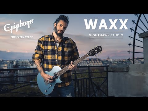 Der französische Musiker “Waxx” ist Künstler, Produzent, Influencer und vor allem ein begnadeter Gitarrist, der mit der sehr seltenen Gibson Nighthawk das Instrument seiner Wahl gefunden hat. Die Nighthawk war 1993 Gibsons zeitgemäße Antwort auf die starke Konkurrenz aus Fernost und dem eigenen Land. Die Produktion wurde jedoch fünf Jahre später schon wieder eingestellt, was der Gitarre einen gewissen Exotenstatus verpasst. Epiphone, seit jeher Anbieter detailgetreuer Nachbauten von Gibson-Instrumenten, hat sich mit “Waxx” zusammengetan und ein Reissue-Modell entwickelt, das den Ansprüchen des Künstlers genügt und dennoch zu einem erschwinglichen Preis erhältlich ist. Das Ergebnis der Zusammenarbeit ist die Epiphone Waxx Nighthawk Studio, die ausschließlich in Pelham-Blue-Metallic erhältlich ist und mit ihren zwei Coil-Split-Humbuckern ein überraschend breites Klangspektrum liefert.