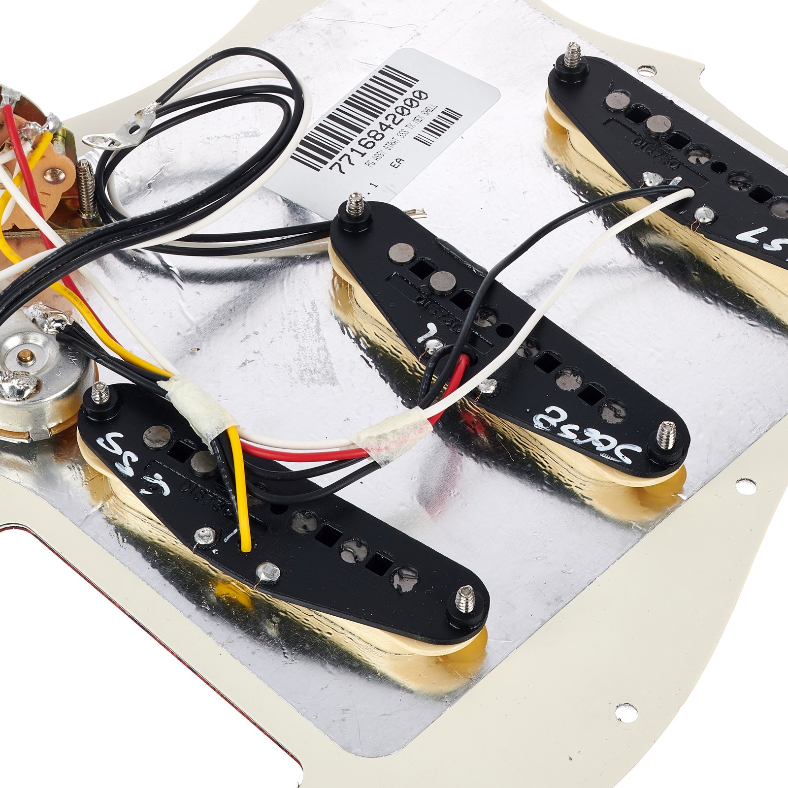 Nicht nur zum Verbessern des Sounds günstiger Gitarrenmodelle eignet sich das Fender Pre-Wired ST Pickguard Tex-Mex. Denn dreilagige Pickguards im Tortoise-Look mit pergamentfarbenen Pickups sind beispiels-weise standardmäßig in verschiedenen Modellen der Fender Stratocaster Ultra Strat- und American Custom-Serie eingebaut. Deshalb lassen sich auch Squier Strats aus der Affinity- und sogar der Bullet-Serie durch Austausch ihrer weißen Schlagbretter mit diesem pergamentfarbenen Pickguard aufwerten. Selbstverständlich können auch andere Stratocaster-Varianten oder Modelle ähnlichen Aufbaus anderer Hersteller von einem Upgrade mit diesen beliebten Pickups profitieren. Und nicht zuletzt können diese Tonabnehmer defekte oder in die Jahre gekommene wie auch intakte, aber farblich oder klanglich nicht passende Single Coils 1:1 ersetzen. Wer das Pickguard seiner Strat nicht austauschen möchte, kann auf das reine vorverkabelte Pickup-Set aus Tex-Mex Tonabnehmern zurückgreifen (z.B. Artikel-Nr. 148655).