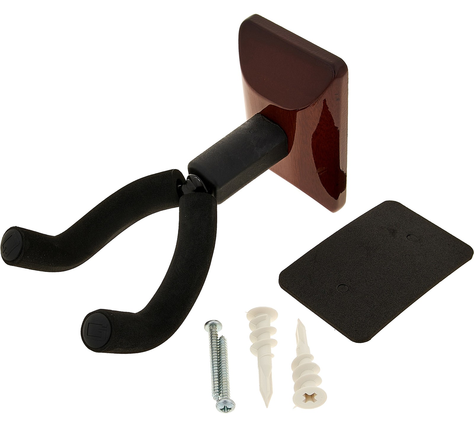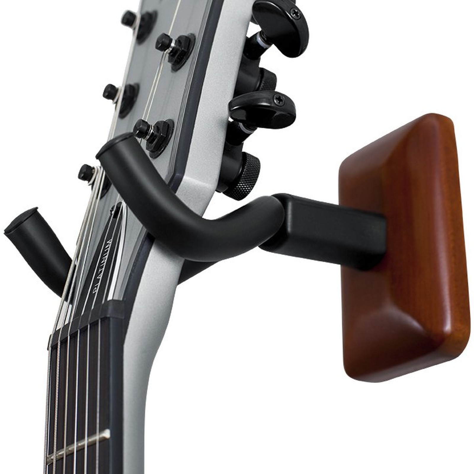 Wer seine Wände lieber mit seinen Instrumenten anstatt mit Bildern schmücken möchte, ist bei dieser schicken Wandhalterung im Mahagonilook von Gator richtig aufgehoben. Besonders, wenn man viele verschiedene Saiteninstrumente im Besitz hat, ist eine Anschaffung dieser Halterung sinnvoll. Mehrere Wandhalterungen sind nämlich nicht nur platzsparend; das gepolsterte Drehgelenk passt sich auch dem Instrument und seiner Kopfform an. Damit sind auch Offset-Kopfformen kein Problem. Nur auf die Lackierung seiner Instrumente sollte der Käufer Acht geben. Die Halterung ist sicher für alle Instrumente mit Standard-Polyurethan-Oberflächen/Lacke, für Nitrolacke, wie beispielsweise von Gibson verwendet, dagegen wird sie nicht empfohlen.