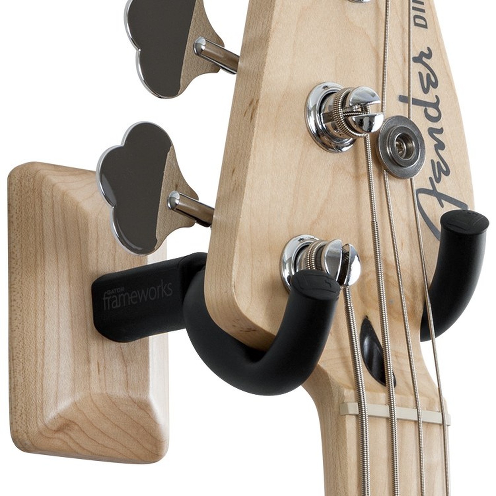 Wer seine Wände lieber mit seinen Instrumenten anstatt mit Bildern schmücken möchte, ist bei dieser schicken Wandhalterung im natürlichen hellen Holzlook von Gator richtig aufgehoben. Besonders, wenn man viele verschiedene Saiteninstrumente im Besitz hat, ist eine Anschaffung dieser Halterung sinnvoll. Mehrere Wandhalterungen sind nämlich nicht nur platzsparend; das gepolsterte Drehgelenk passt sich auch dem Instrument und seiner Kopfform an. Damit sind auch Offset-Kopfformen kein Problem. Nur auf die Lackierung seiner Instrumente sollte der Käufer Acht geben. Die Halterung ist sicher für alle Instrumente mit Standard-Polyurethan-Oberflächen/Lacke, für Nitrolacke, wie beispielsweise von Gibson verwendet, dagegen wird sie nicht empfohlen.