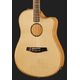 Die AEG 1 E- Acoustic Natural bringt klassische Tonhölzer in eine moderne Form: Eine Engelmann-Fichtendecke mit Scalloped-X-Streben trifft auf einen Boden aus indischem Palisander und Zargen aus robust geschichtetem Pappelholz - eine ungewöhnliche, aber klanglich sehr gut funktionierende Mischung. Der Hals aus afrikanischem Mahagoni liegt mit seinem angenehmen C-Profil komfortabel in der Hand und wird von einem Griffbrett aus indischem Palisander bedeckt. Mit einem flachen Griffbrettradius von 16 Zoll, einer Mensur von 651mm und einer Sattelbreite von 43mm bietet die Gitarre eine bequeme Bespielbarkeit für Fingerstyle ebenso wie für das Akkordspiel. Eine Besonderheit ist das zum Patent angemeldete Halsunterstützungssystem, das Decke und Boden entlastet und somit die Resonanzfähigkeit steigert. So entsteht ein offener, dynamischer Ton mit außergewöhnlicher Tiefe und Wärme selbst bei einem solch schlanken Korpusdesign.