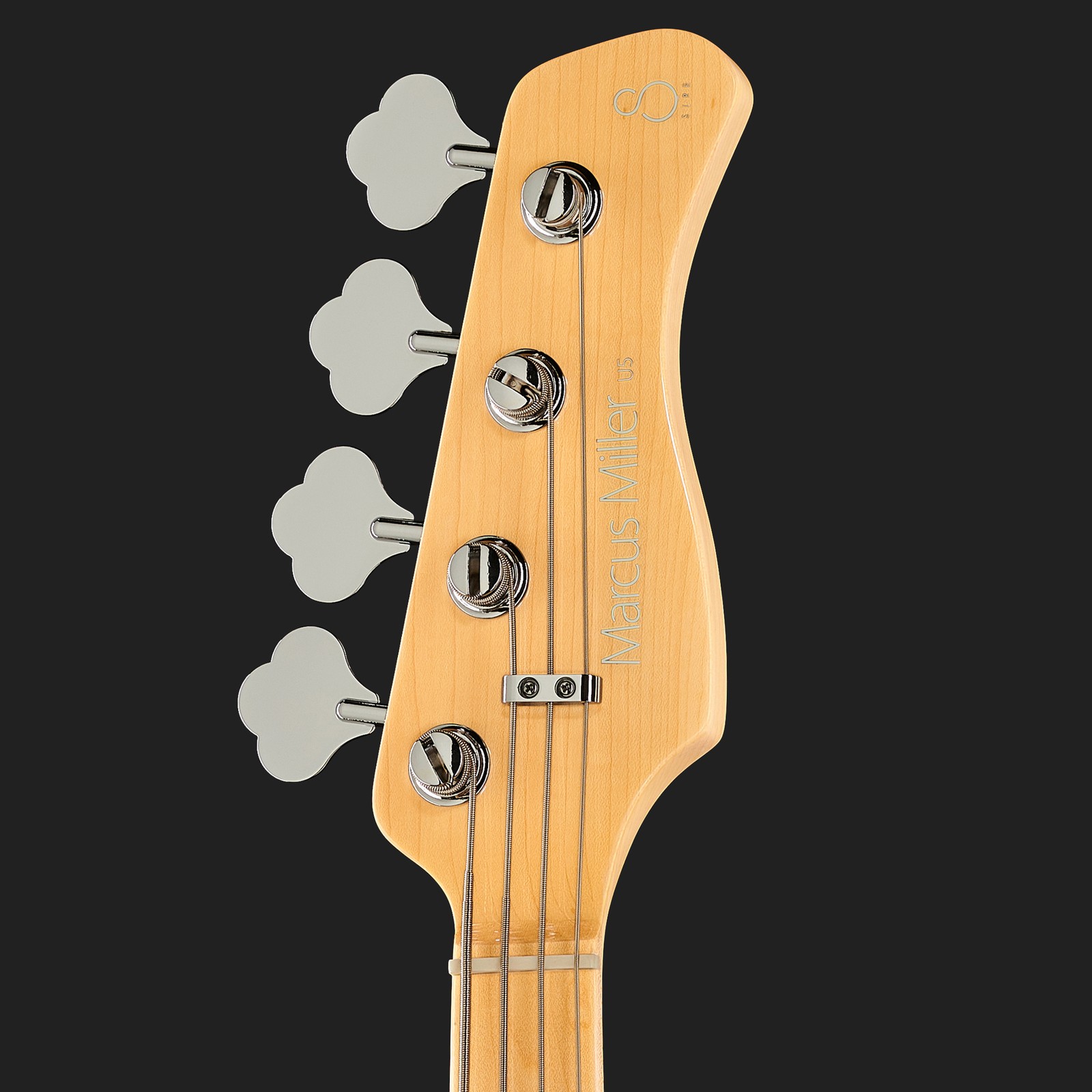 Eine Korpus aus Erle und ein Hals bzw. Griffbrett aus Ahorn sind über Jahrzehnte eine bewährte Holzkombination und kommen daher auch beim Sire U5 zum Einsatz. Der größte Unterschied zu seinen Brüdern V3 bis V10 ist sicher die kürzere Mensur, welche nicht nur der Greifhand entgegenkommt, sondern auch klanglich deutliche Einflüsse hat. Bei den Pickups hat sich Sire entschieden, das „Best Of Both Worlds“ von P- und J-Bass zu vereinen. Die Elektronik ist passiv, jeder Tonabnehmer hat dabei seinen eigenen Volume-Regler und für beide zusammen gibt es eine passive Tonblende. Mit ihr kann man den Sound den eigenen Wünschen anzupassen. Der Marcus Miller U5 ist in den klassischen Finishes Tobacco Burst oder Natur erhältlich. Wer Mut zur Farbe hat, greift zum knalligen Mint inklusive Matching Headstock.