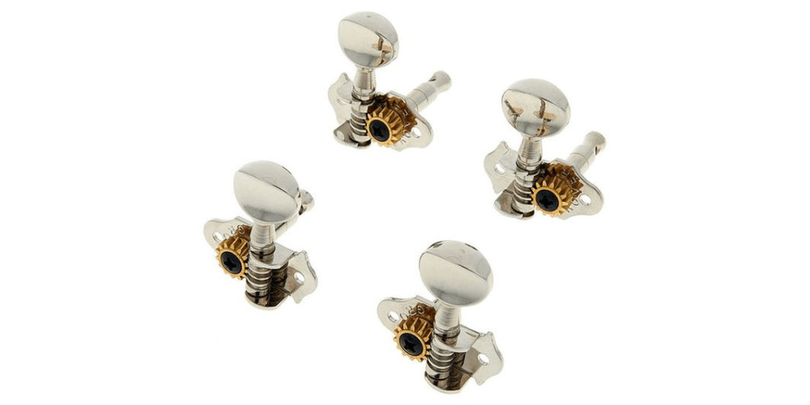 Gerade Mechaniken für Ukulelen mit geschlossener Kopfplatte gibt es schon für unter 15 Euro von Grover (Grover 2B Champion Ukulele Pegs) oder für knapp 30 Euro von Kala (Kala Ukulele Machine Heads BK) mit einem Übersetzungsverhältnis von 6:1. Gewinkelte Mechaniken für die seitliche Montage am Kopf sind schon für rund 10 Euro von Ortega (Ortega OTMUKOG-CR) oder Harley Benton (Harley Benton Parts Ukulele Machine Head Set) zu haben. Und wer auf der Suche nach Mechaniken für die Bass-Ukulele ist, wird ebenfalls in dieser Kategorie fündig (Ortega OTMUB-GB Black).