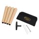 Nun gut, bevor ich die aufgesetzten "Stöpsel", oder wie man diese kleinen Hubbel auf der Unterseite der Harfe nennen soll, mit roher Gewalt entfernte, bekam ich die Inspiration, es doch mit Schrauben zu versuchen. Und siehe da - es funktionierte bestens, da alles gute Wertarbeit ist. Die Beine waren im Nu angeschraubt und die Höhe des Instrumentes passte. Beim ersten Stimmen habe ich natürlich wieder einmal übertrieben - eine Saite musste mit einem hässlichen Laut aus ihrem noch jungen Leben scheiden. Das war meine Schuld, denn in der Anleitung wird genau vor diesem Missgeschick gewarnt. Gott sei Dank hatte ich eine Gitarrensaite vorrätig, die passte, musste dann aber zuerst pröbeln, bis ich diese richtig aufgezogen hatte.