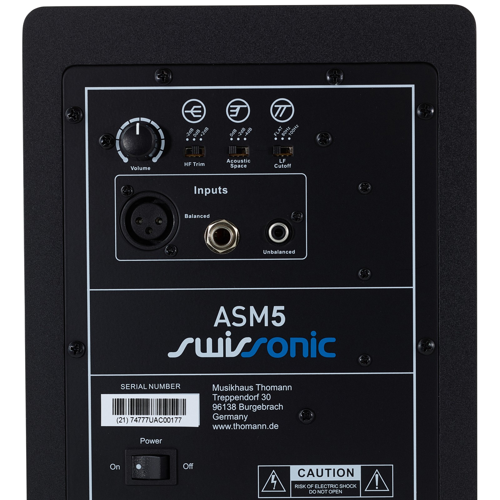 Die Swissonic ASM5 bietet viele Anschlussmöglichkeiten und lässt sich problemlos in jedes Audiosystem integrieren. Neben einem im professionellen Studiobereich üblichen, symmetrischen XLR-Anschluss und einem ebenfalls symmetrischen 6,3mm-Klinkenanschluss findet sich eine Cinch-Buchse für unsymmetrische Verbindungen, wie sie im Consumer-Bereich gängig sind. Die umfangreiche Filtersektion ist mit einem Bassfilter (-2 dB, -4 dB), einem Höhenfilter (-2 dB, +2 dB) sowie einem zusätzlichen Lowcut (80 Hz, 100 Hz) ausgestattet, der insbesondere im Verbund mit einem zusätzlichen Subwoofer wie dem Swissonic Sub10 hilfreich ist. Die automatische Standby-Funktion senkt die Leerlaufleistung auf geringe 0,5 Watt ab und ist mit einer zugehörigen Status-LED gekoppelt. Mehr Features kann man sich auch für einen Monitor aus einer höheren Preisklasse kaum wünschen.