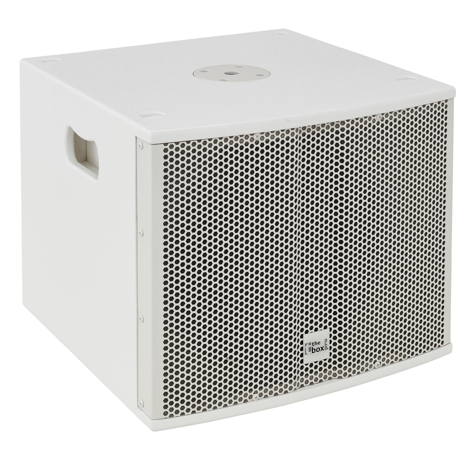 Der strahlend weiße the box pro Achat 112 Sub WH ist ein kompakter 12“-Subwoofer der Thomann-Hausmarke the box pro mit einem sehr guten Preis-Leistungs-Verhältnis. Für eine Bassbox dieser Größe deckt er ein erstaunlich großes Frequenzspektrum ab. Nach dem Auspacken entdeckt man ein 450 mm breites, 370 mm hohes und 456 mm tiefes Gehäuse, in welches ein passiver Tieftöner mit einem 12 Zoll-Basslautsprecher eingebaut ist. Überzogen ist der Achat 112 Sub WH mit weißem Lack. Auf der Oberseite blickt man in zwei M20 Hochständerflansche, in welche auf Distanzstangen Topteile gesteckt werden können – für ein möglichst schönes Erscheinungsbild empfiehlt sich da ebenfalls weiß. Zum Betrieb ist ein passender Verstärker erforderlich. Entwickelt wurde das gute Stück übrigens in Deutschland.