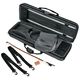 Thomann Aria Student Violinset 1/4 DB, vollmassive Violine mit Spiritus-Handlackierung, Boden, Zargen und Hals aus massivem geflammtem Ahorn, Ebenholz-Griffbrett, Kinnhalter und Wirbel aus Buchsbaum, Thomastik Dominant Besaitung, Buchsbaum Saitenhalter mit 4 Feinstimmern, achteckiger Bogen mit Ebenholz-Frosch, Roth & Junius Grey Line Etui mit Rucksack-Gurten. Farbe: dunkel-braun.