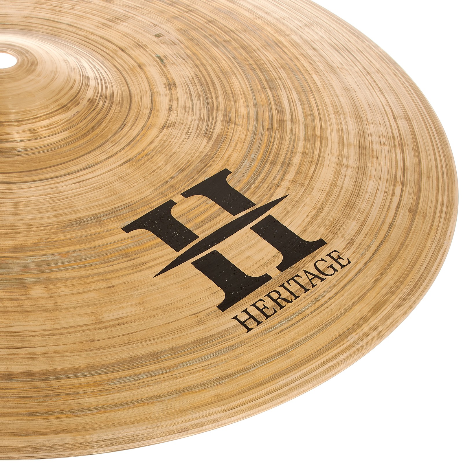 Die Becken aus der Heritage-Serie werden aus einer B20-Bronzelegierung gefertigt und bestehen somit aus 80% Kupfer und 20% Zinn. Mit ihrem verhältnismäßig geringem Gewicht lassen sie sich in die Medium-Thin- bis Thin-Kategorie einordnen. Der Klang zeichnet sich durch eine ausgewogene Mischung aus einem warmen Grundton und einem hellen und hochgradig definierten Stockanschlag sowie durch eine blitzschnelle Ansprache aus. Die sehr leichte 14“-Heritage-Hi-Hat ermöglicht subtiles Spiel und bietet gleichzeitig eine gute Durchsetzungsfähigkeit.