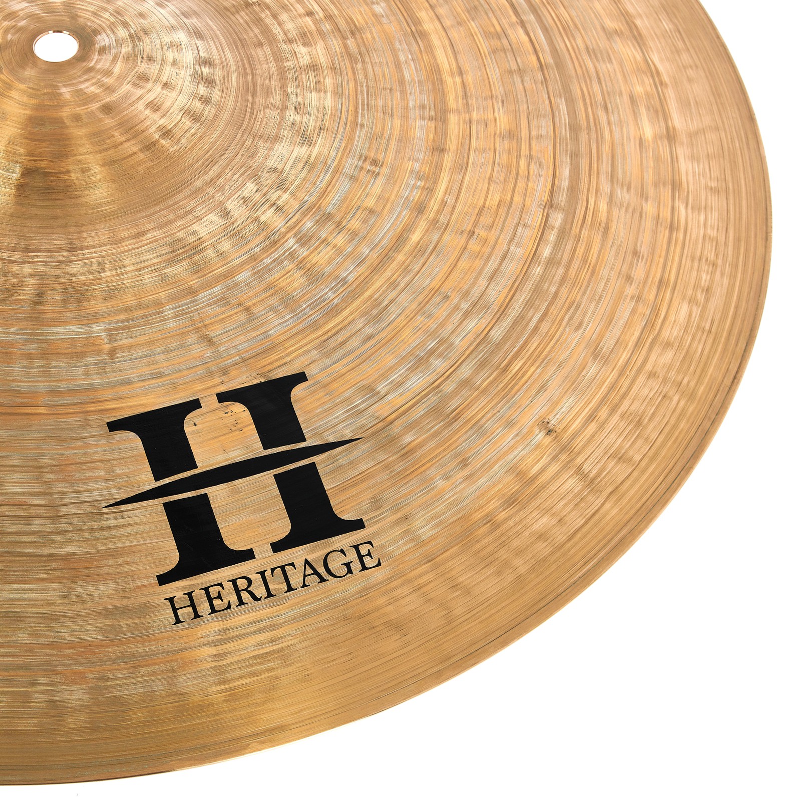 Die Becken aus der Heritage-Serie werden aus einer B20-Bronzelegierung gefertigt und bestehen somit aus 80% Kupfer und 20% Zinn. Mit ihrem verhältnismäßig geringem Gewicht lassen sie sich in die Medium-Thin- bis Thin-Kategorie einordnen. Der Klang zeichnet sich durch eine ausgewogene Mischung aus einem warmen Grundton und einem hellen und hochgradig definierten Stockanschlag sowie durch eine blitzschnelle Ansprache aus. So lässt sich das 17“-Heritage-Crash schon durch einfaches Anschlagen mit der Hand dazu bringen, einen reichhaltigen Sound zu entfalten.